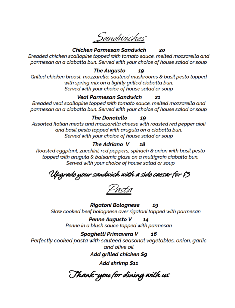 Lunch Menu Contact Info 11 Queens AvenueLeamington ON, N8H 3G5 (519) 398-2022 Call for reservations Navigation HomeDinner MenuLunch MenuAbout UsContact Us Business Hours MondayClosedTuesdayClosedWednesday11:30 AM — 8:00 PMThursday11:30 AM — 8:00 PMFriday11:30 AM — 9:00 PMSaturday11:30 AM — 9:00 PMSunday4:00 PM — 8:00 PM